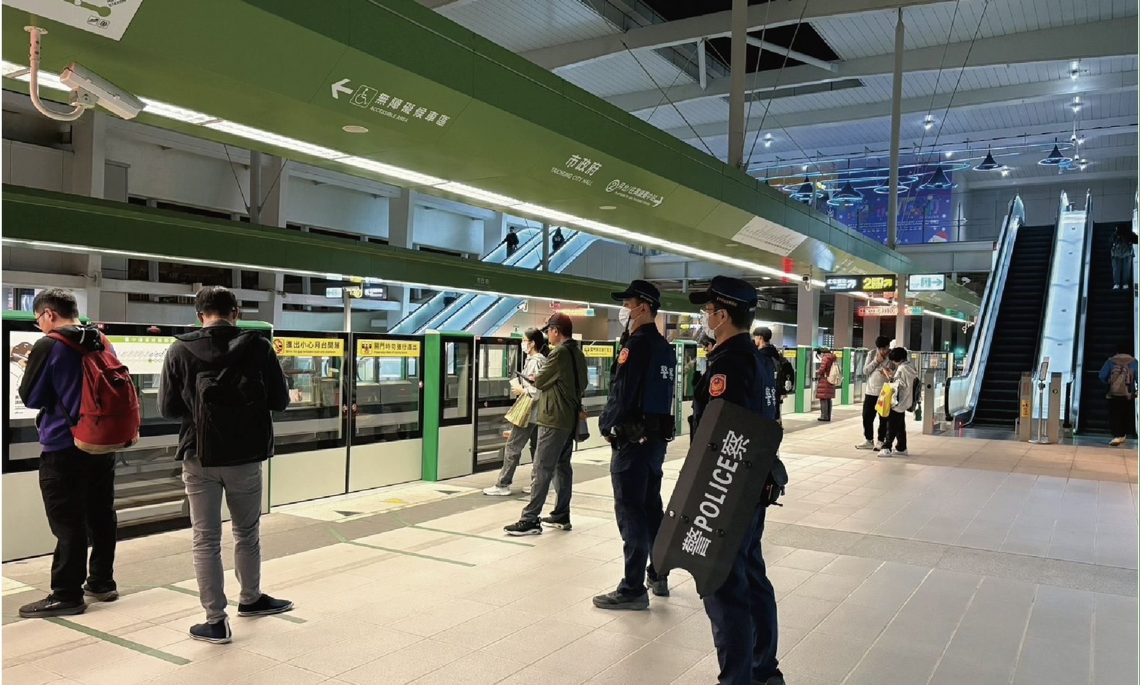 警力調度方面,亦強化捷運警察隊編制與密度,並以3至5分鐘內到場為目標,提升即時處置效率,打造安全、安心的捷運環境。(4/21*17)*警察局