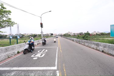 建設局長陳大田說明,守護用路平安是建設局的核心任務,此次工程改建長度176公尺,橋面總寬度將大幅拓寬至16.5公尺。規劃上配置雙向兩車道(含快、慢車道),並特別增設轉向專用車道,配合號誌調整以提升路網效能。此外,為了體現「行人優先」理念,橋梁兩側均配置人行道,完善人本交通空間。