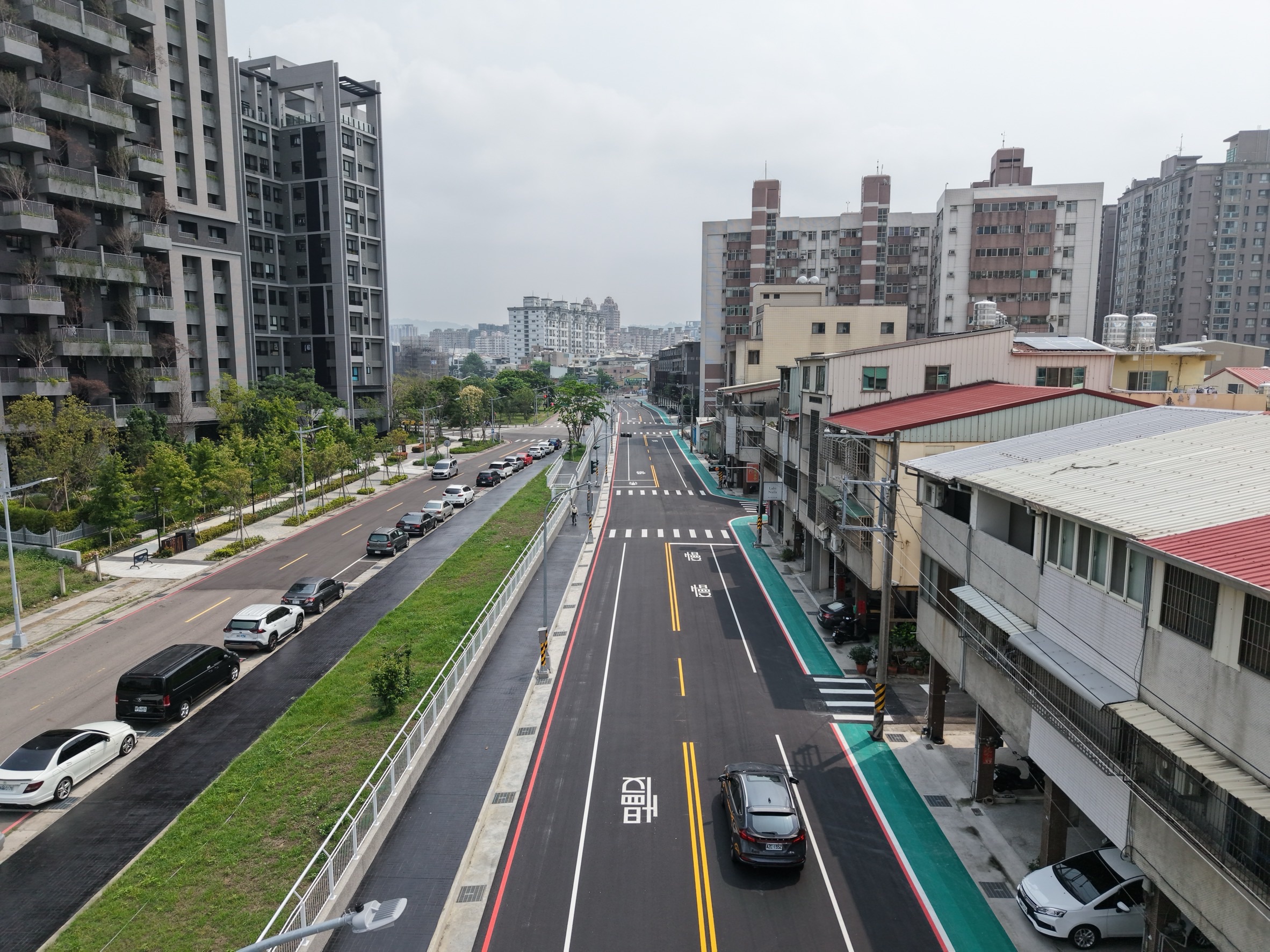 建設局補充,工程總經費3億600萬元,其中用地費約2億5,500萬元、工程費約5,100萬元,施工內容包含填平廢棄河道、設置交通號誌、路燈、側溝及人行道等設施,工程自113年12月10日開工,已如期於今日完工通車。完工後不僅有效紓解交通壅塞,也串聯新舊市區路網,進一步強化地方發展動能,落實「富市台中 行人安全」施政目標。(4/22*15)*建設局