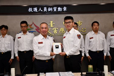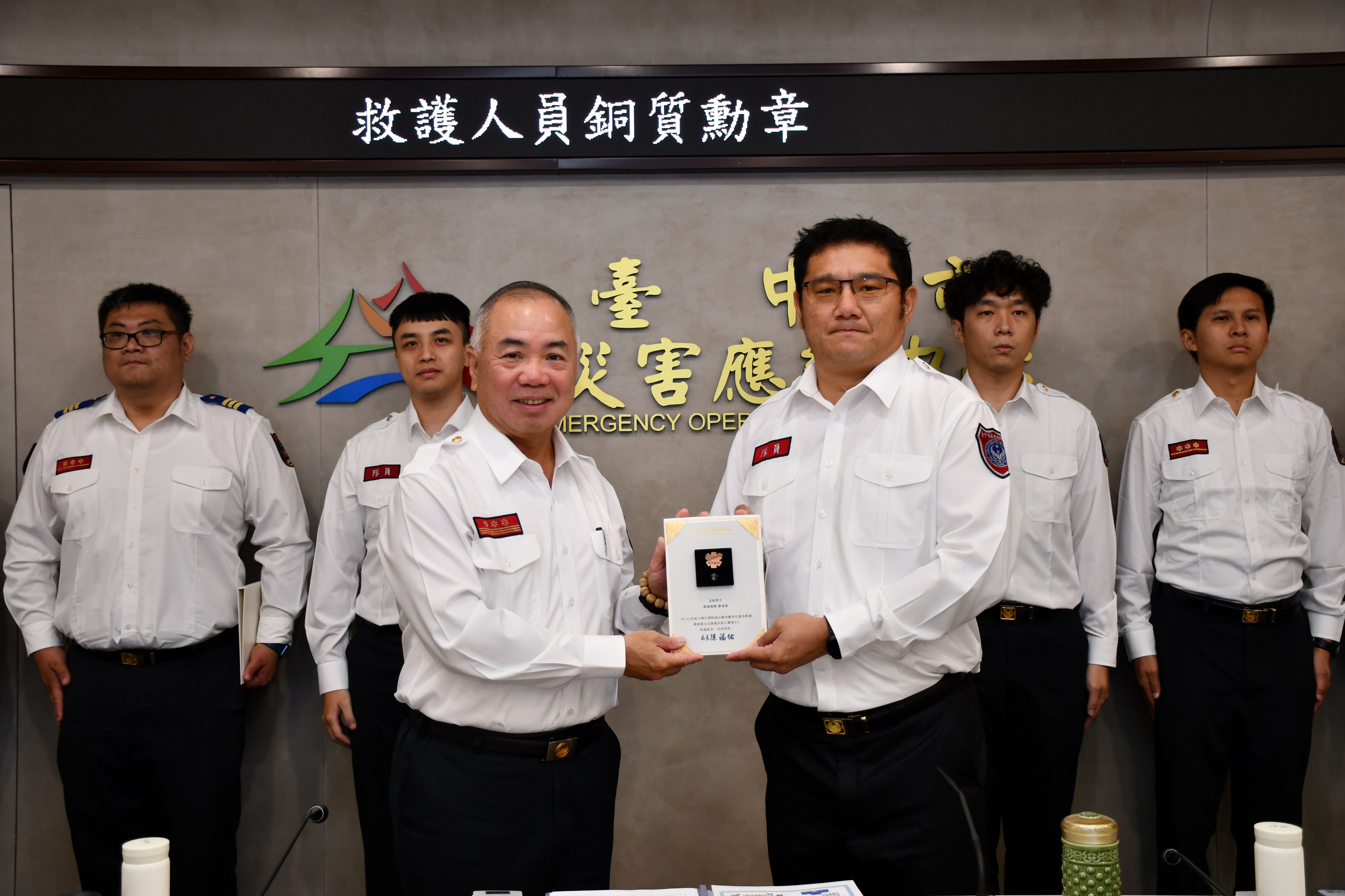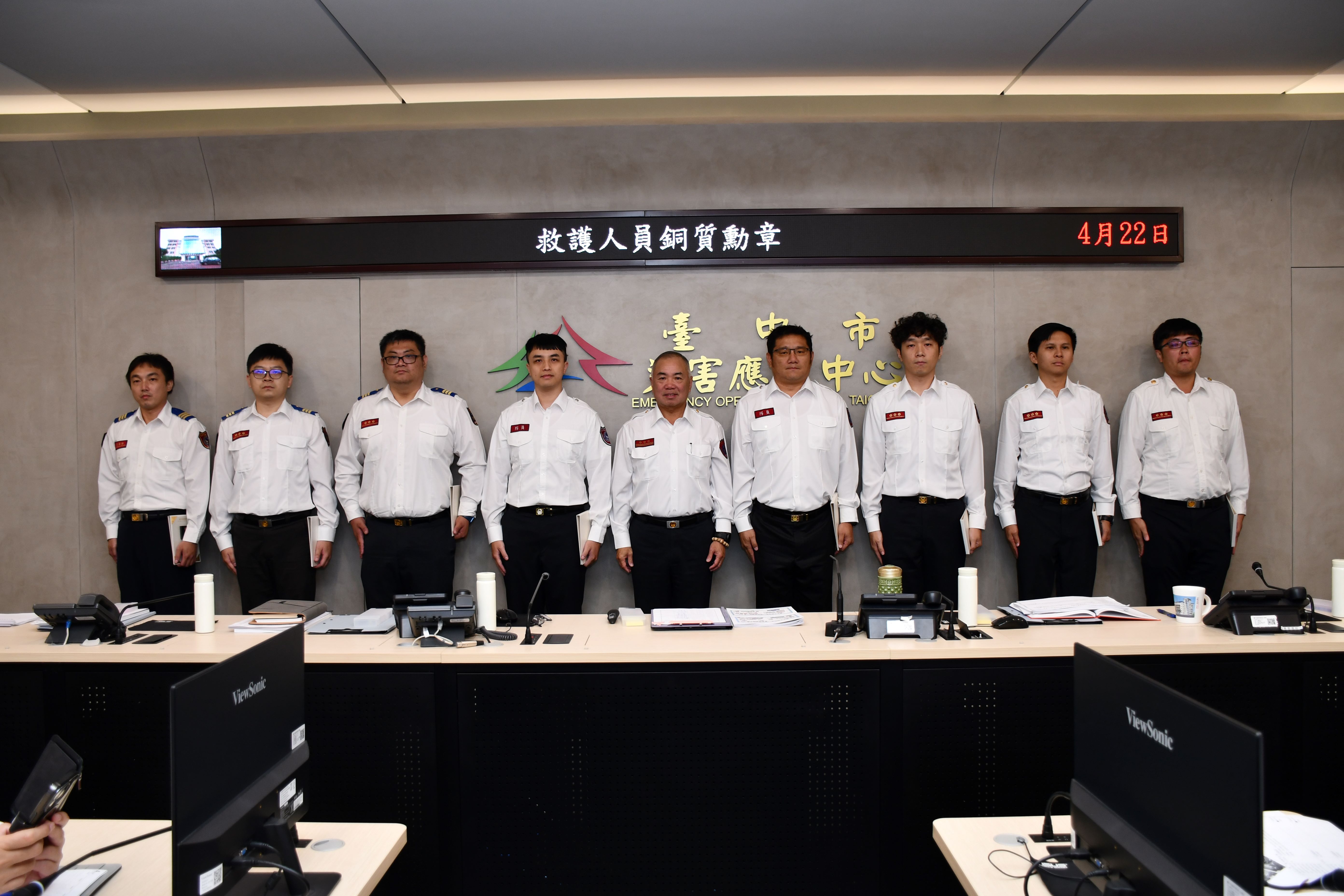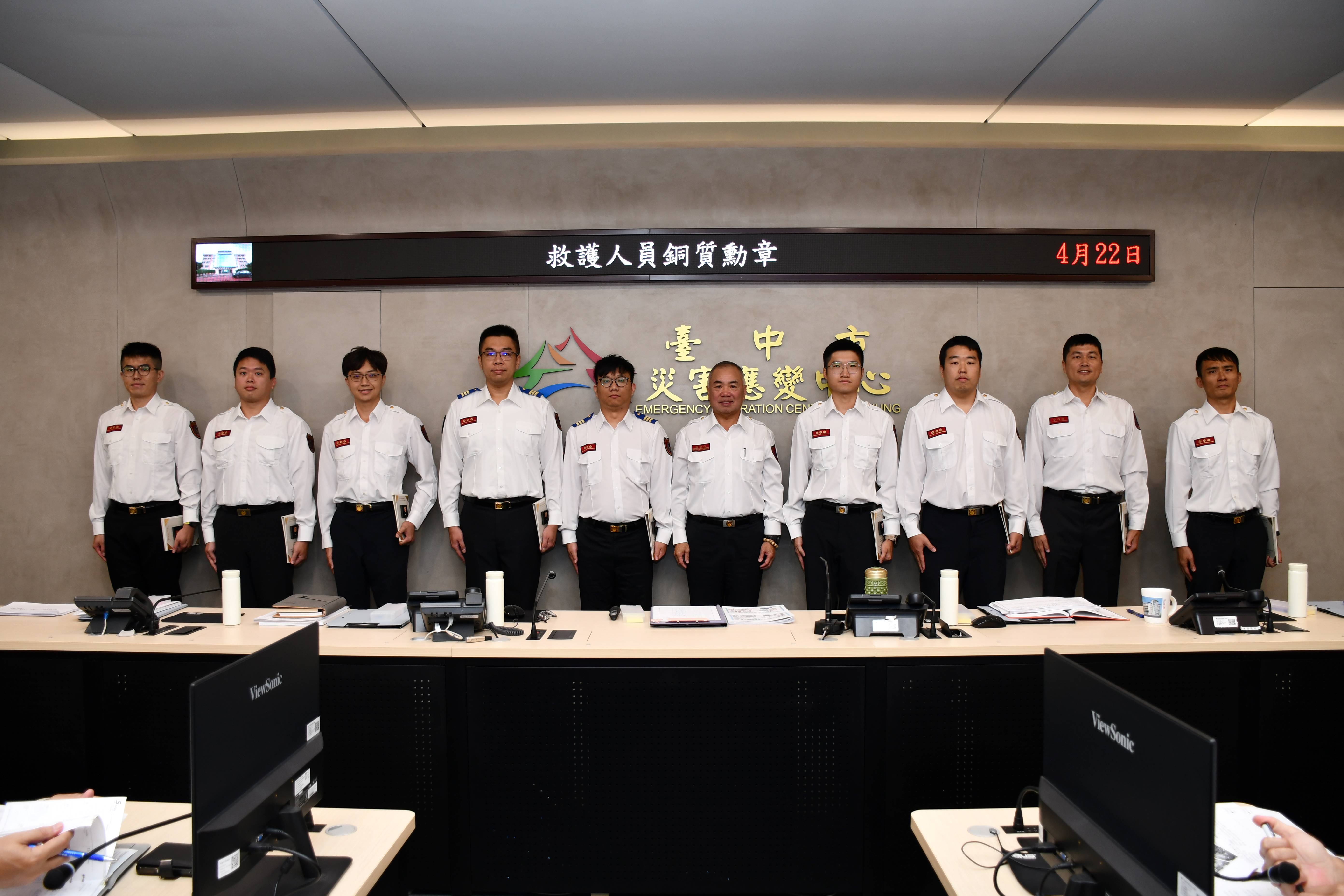 為表彰執行救護勤務有功人員,中市消防局藉由公開表揚嘉勉其辛勞並提振士氣,前(22)日消防局主管會報,局長孫福佑親自為22位優秀的救護同仁頒授銅質勳章,他們憑藉著精湛的救護技能,每位都成功讓3名OHCA(到院前心肺功能停止)患者康復出院,展現了高超的急救能力。