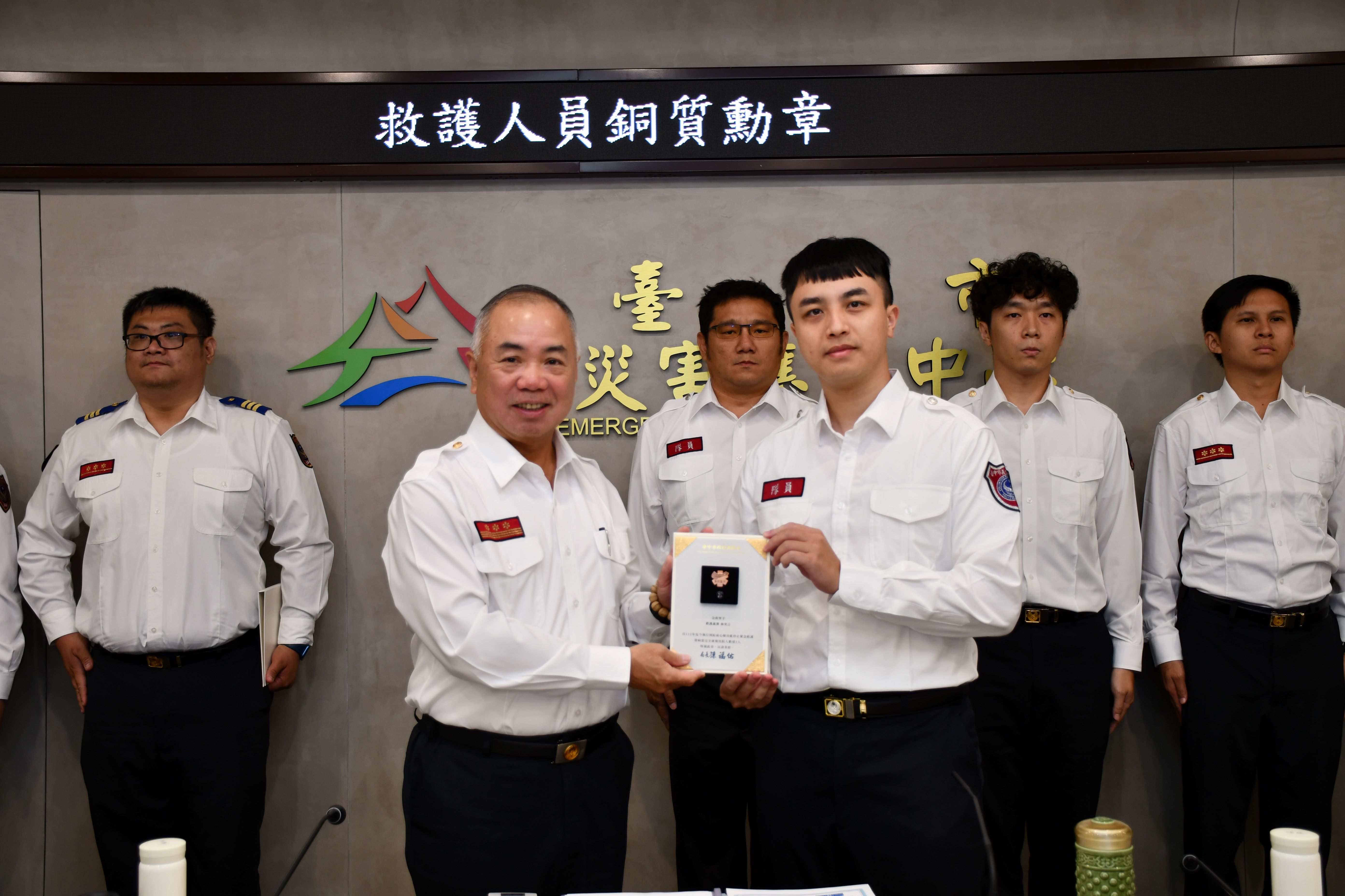 消防局指出,尤其引人注目的是,此次獲頒銅質勳章同仁中,有2位是來自博館高級救護隊的救護義消,他們在各自的本業之餘,毅然投入高強度的緊急救護行列,與消防同仁並肩作戰,分秒必爭地搶救生命。這種無私的付出,不僅是守護市民生命安全的堅實後盾,更為救護團隊帶來強大的支持力量。
