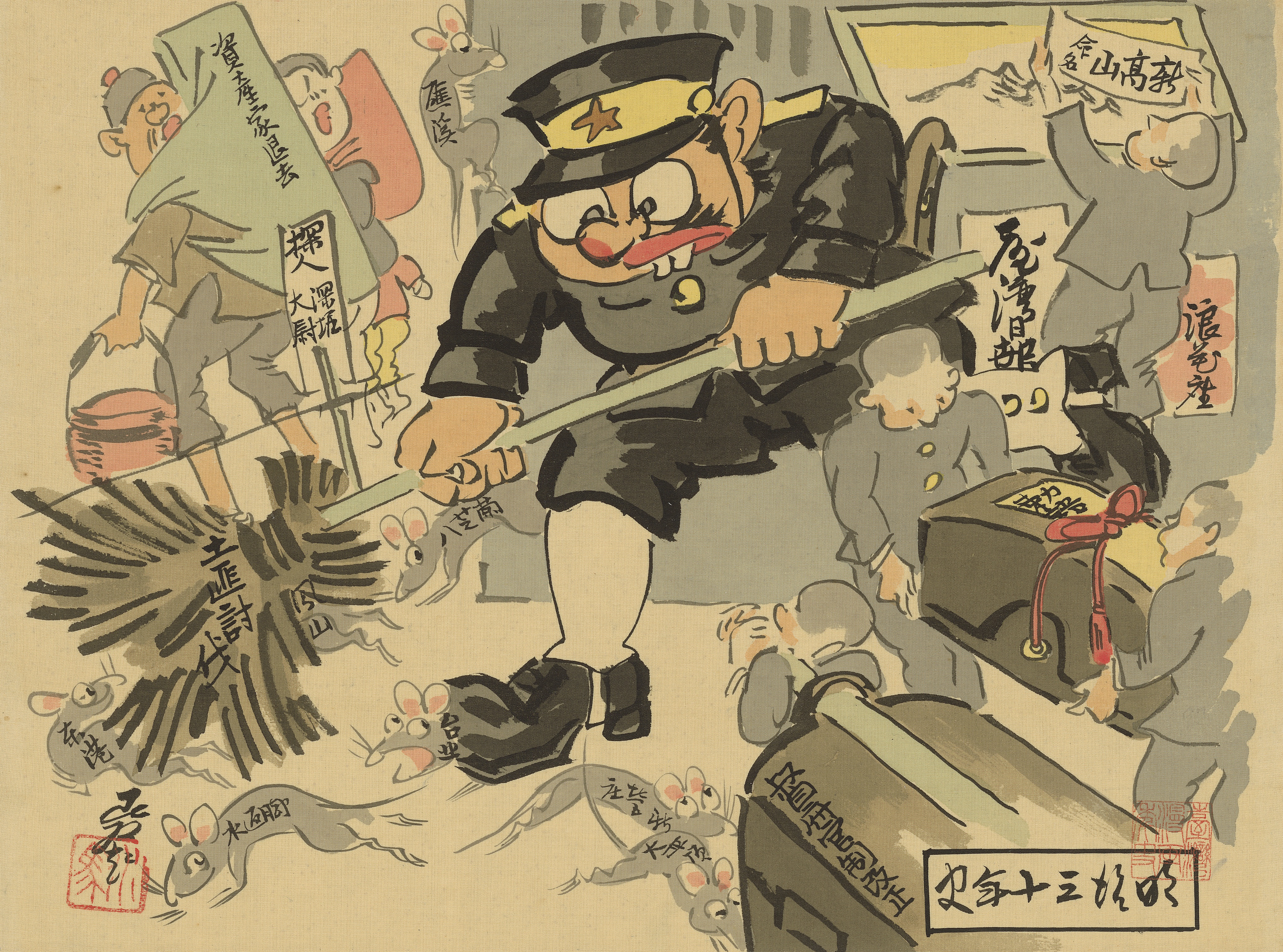 中美館補充,此展也展出國島水馬〈台灣漫畫年史〉等具有歷史價值的諷刺漫畫,該作以幽默圖像回顧1895年至1938年間日治時期台灣的重要歷史,上次展出是1940年,睽違八十餘年後再次於中美館面世。此展同時也精選多件館藏作品,如劉國東〈山頂〉以明亮色彩描繪台中新社層疊山巒,陳夏雨〈勞動者〉則以內斂語彙雕塑戰後社會中勞動者的精神面貌。