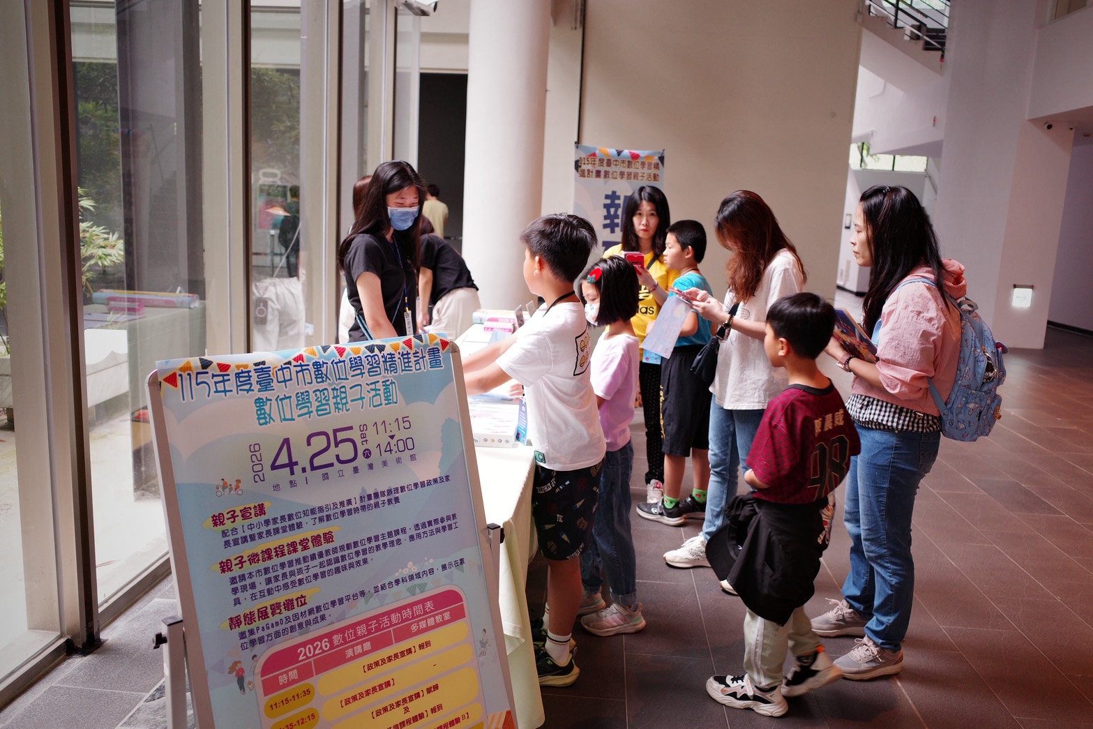 為深化數位學習推廣,台中市政府教育局攜手台中市「中小學數位學習推動辦公室」,於今(25)日在國立台灣美術館辦理「115年度數位學習親子活動」,吸引眾多家長與高中以下師生熱情參與;此次活動特別選在國美館舉行,將科技學習與藝文氛圍結合,為台中市親師生打造一場別開生面的數位嘉年華。