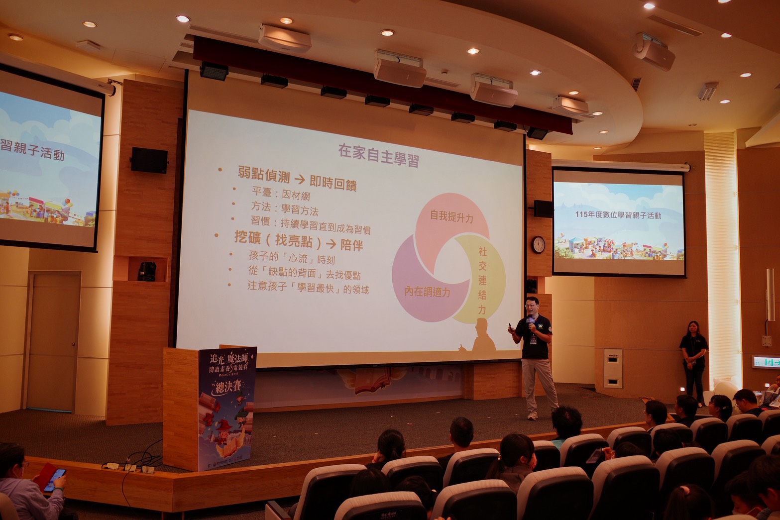 現場亦邀請台中市數位學習領航教師規劃「親子微課程」;藉由精心設計的教學示範與科技應用分享,引導家長貼近孩子的學習日常,在輕鬆、溫暖的氛圍中與孩子一起發現數位學習的無限樂趣。(4/25*17)*教育局