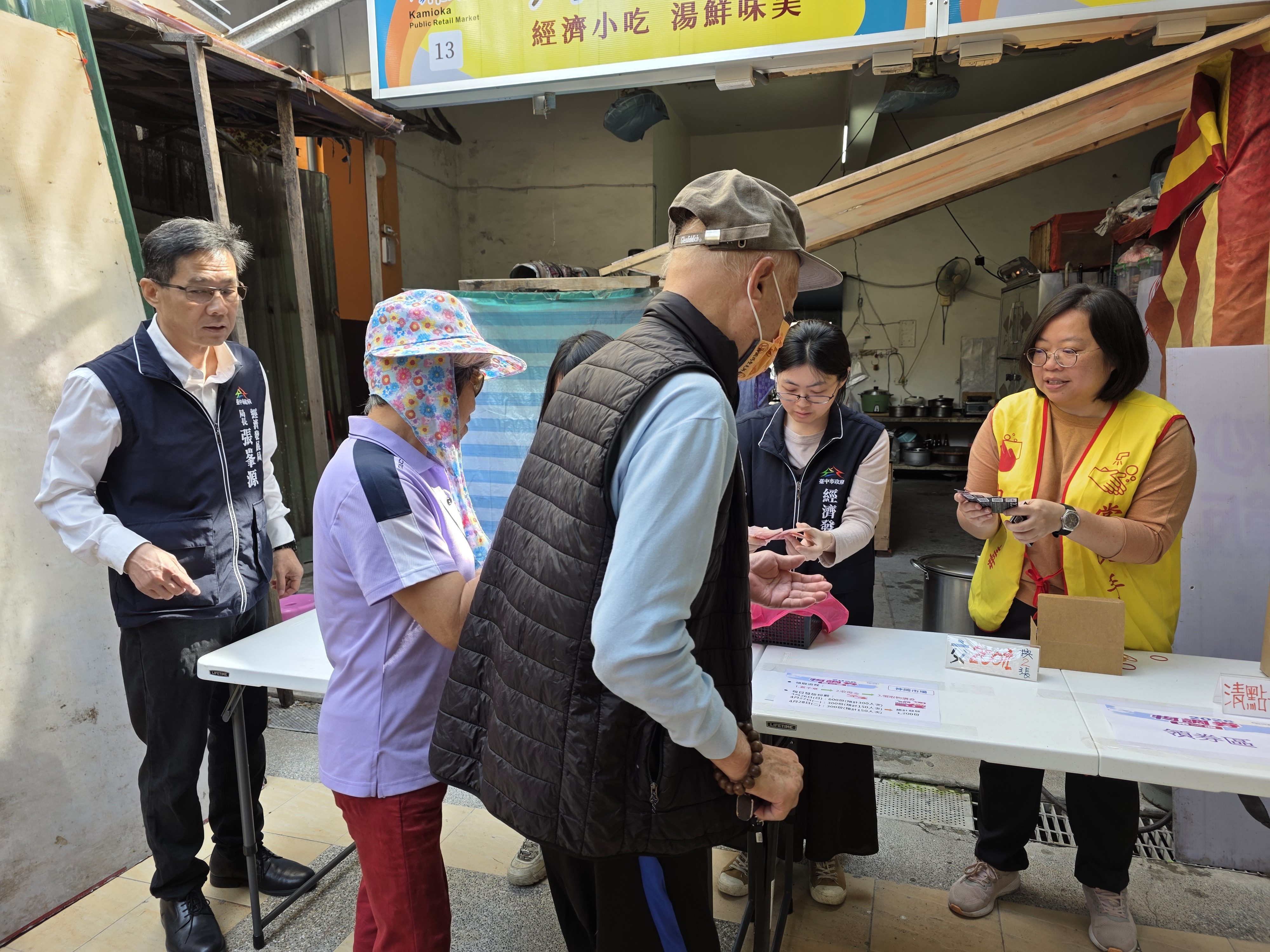 經發局長張峯源今日上午前往神岡市場一同發放物調券表示,天氣轉晴使民眾得以在安全、舒適的環境下參與,有助民眾踴躍參加,且今早各市場回報發放狀況良好,各地呈現人山人海盛況,不少人事先規劃採買清單,完成兌換後旋即於市場消費,選購蔬果、肉品及各類生活用品。多數民眾反映,物調券有助減輕日常開銷;攤商也表示,整體買氣較平日明顯提升,營業狀況更為熱絡。此外,也特別感謝立法委員、在地市議員、里長及區公所團隊派員至各場域關心與協助。