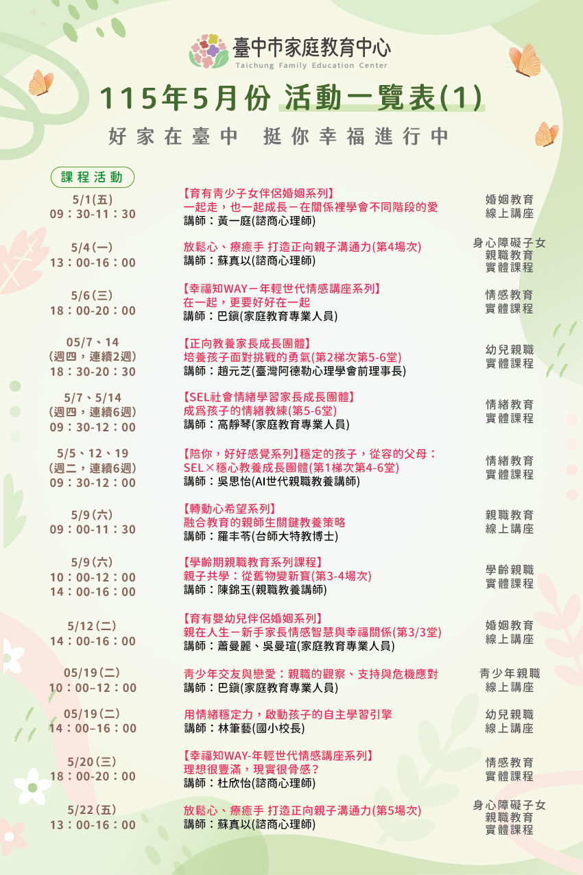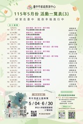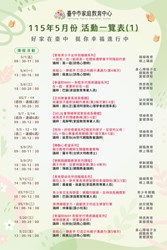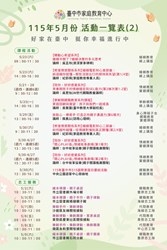 🍀五臺中市家庭教育中心【115年5月份活動一覽表】月溫馨上架🍀