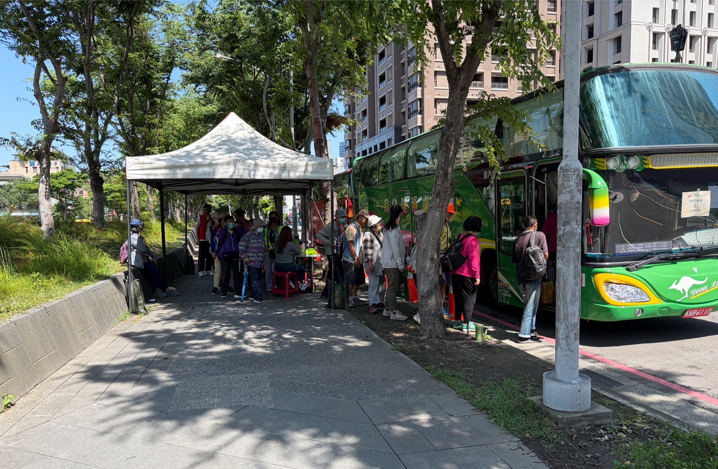 交通局此次規劃3條免費接駁路線,包括西屯區「朝富停車場(老虎城)往返大甲體育場」、大甲區「美人山營區停車場往返大甲高中」,以及「大甲國小往返大甲體育場」,各接駁站於首班車發車前即湧現候車人潮,不少熟門熟路的信眾已習慣利用接駁服務參與遶境活動,免去自行開車與尋找停車位的不便,深受民眾肯定。