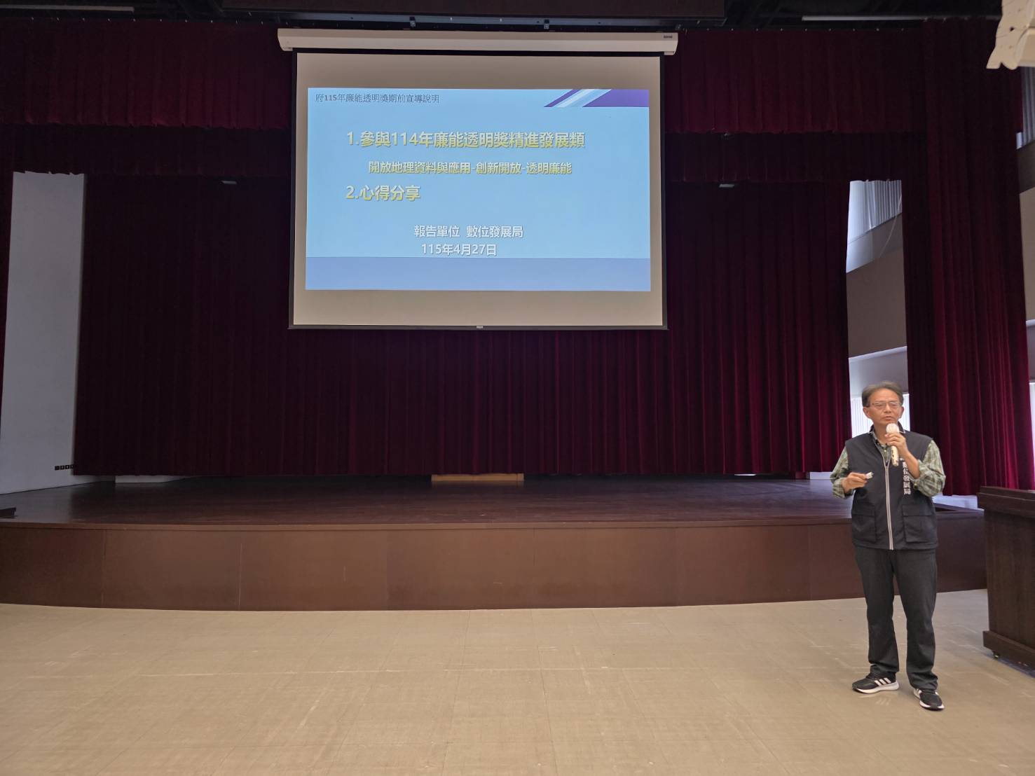 政風處指出,為落實市長盧秀燕「廉能政府」的施政理念,在本次廉能透明獎期前宣導說明會中,政風處安排數位發展局及新社區公所等去年得獎機關,分享優秀案例,供各機關標竿學習,藉由雙向交流,讓各機關汲取經驗及相互學習,優化整體提案品質。