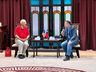 致力於海外推廣台灣茶文化、連結經貿交流的美國洛杉磯僑領陳貴東僑務顧問一行,今(28)日蒞臨台中市政府拜會,由副市長鄭照新代表接待,雙方針對台中現代城市建設、農產外銷優勢及茶文化傳承等議題進行深度交流。