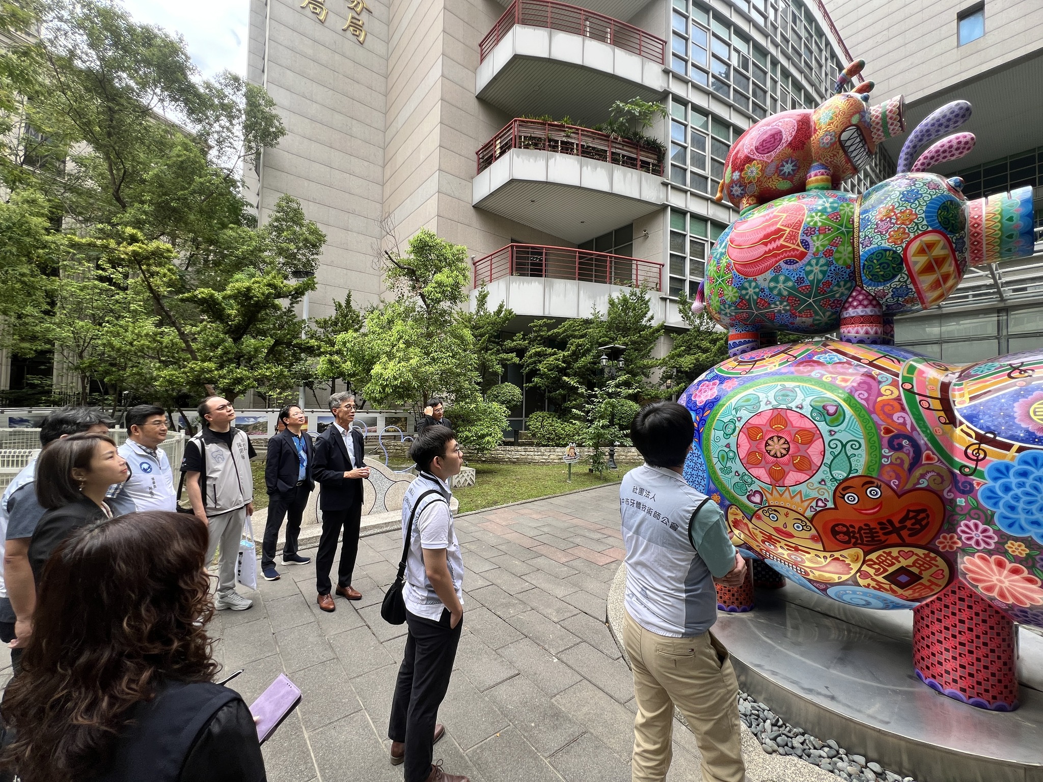 地稅局表示,沈局長首先化身導覽員,親自解說前庭裝置藝術。從洪易大師的《叁豬》、充滿寓意的相思樹,到兼具休憩與活動功能的舞詩道與沙坑設施,處處展現地稅局結合環境美學與人本關懷的細膩用心。隨後安排展示「地稅小幫手」的查詢稅法規定,及整合線上試算、線上申辦及多元e化繳稅管道系統等各項功能,提供全國民眾24小時不受時空限制的一站式稅務服務,充分體現數位轉型的便利性與即時性。