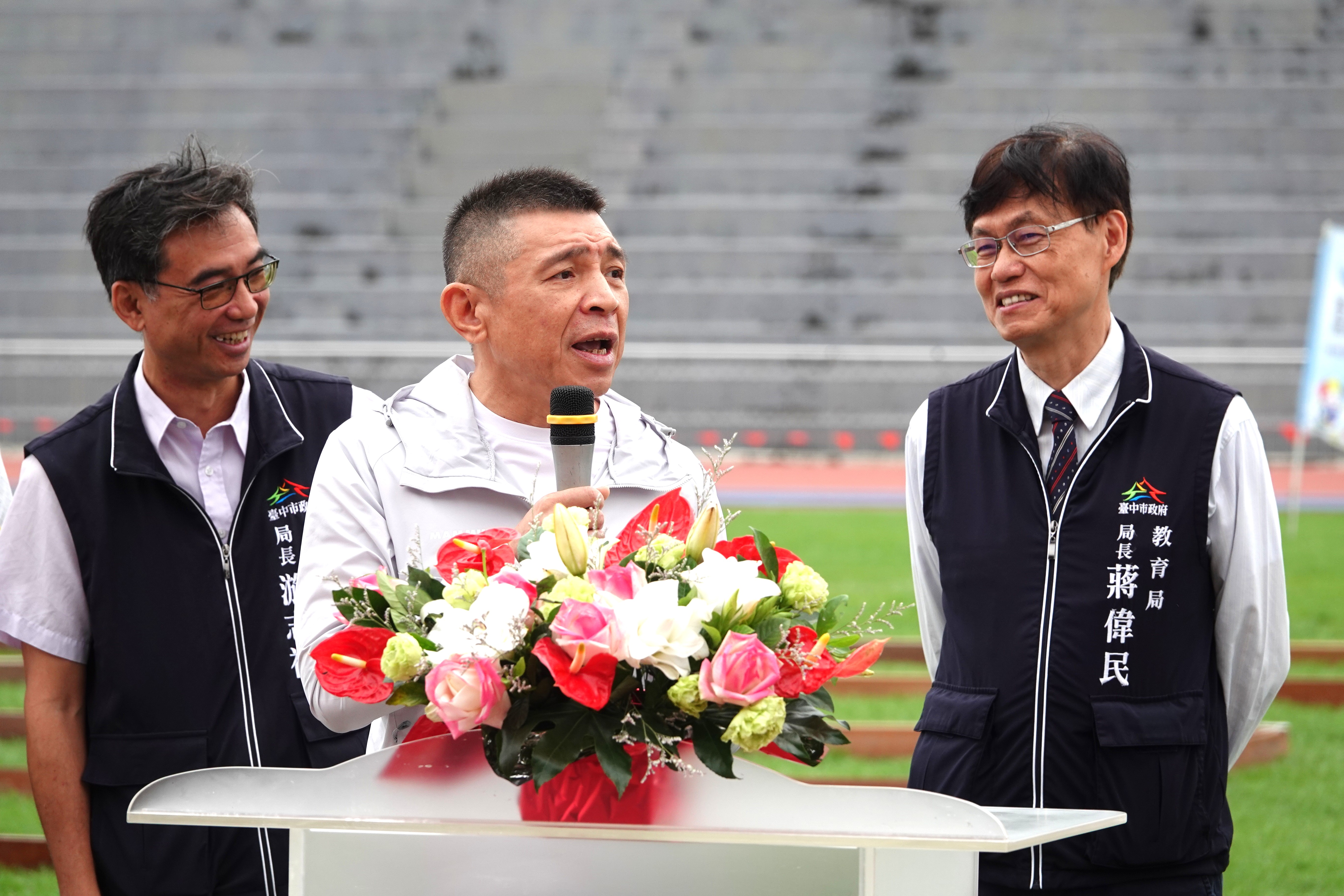 今日活動,運動局長游志祥、教育局長蔣偉民、台中市身心障礙體育總會理事長暨市議員林孟令、秘書長陳薇任、後援會會長賴鴻毅、維他露基金會執行長詹益榮、特奧委員會主委周珮霖、台中特教學校校長邱進興、豐原高商校長賴炘棠、東勢高中校長周文松、大雅國中校長黃正隆、豐原國中校長羅永昇、公明國中校長柯杏燕、梧棲國中校長顏隨勝、潭秀國中校長晏傳嫘、文雅國小校長楊鴻銘、沙鹿國小校長陳勇男、霧峰國小校長葉聰信及家長會長何明潔、石城國小學務主任黃堃哲等均到場支持。(4/30*17)*運動局