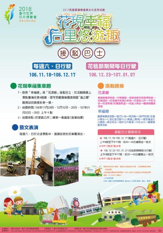 「花現幸福 后里悠遊趣」將於106年11月18日隆重登場。