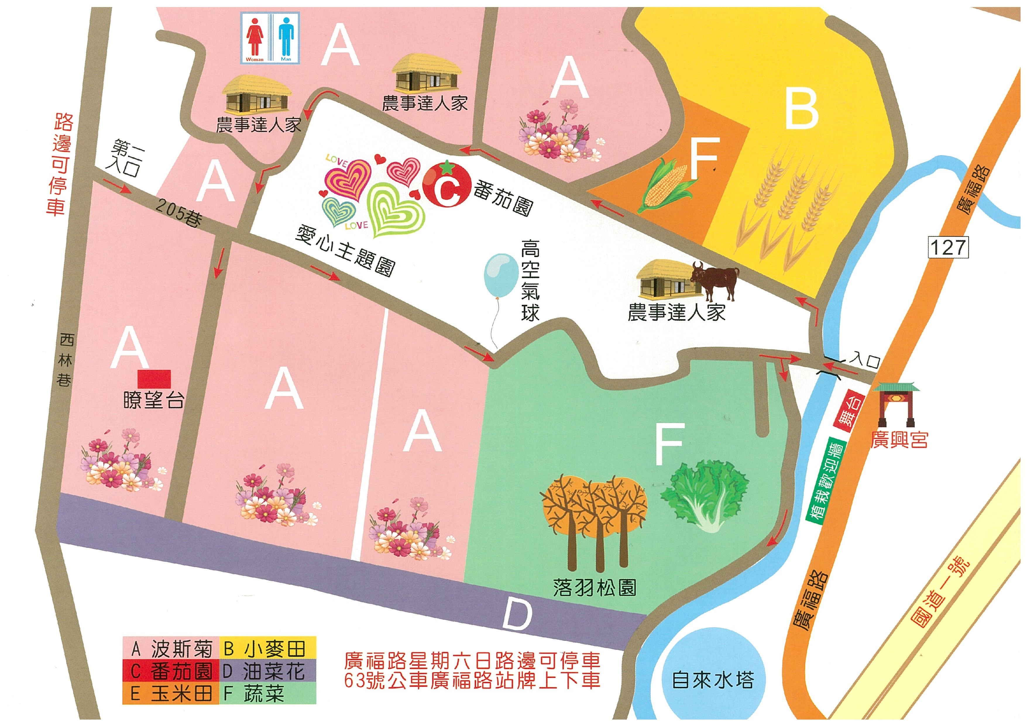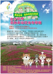 「2018喜迎花博廣納幸福花海季」,將於本(107)年1月20日(星期六)上午9時在廣福里廣興宮廣場(廣福路230號) 舉辦花海季開幕式,邀請市民朋友一起參加花海巡禮,漫步在波斯菊花田、小麥田、油菜花田等10甲地的花海中,欣賞音樂表演;在賞花高臺上觀賞一望無際奼紫嫣紅壯觀美景,感受來自大地賜予的心靈饗宴。