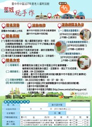 積極參與休閒活動對於老人身心有正面的效果,藉由辦理各項老人活動,增進長者生活品質,充實精神生活,以達長者身心健康。爰此,本所特於本(107)年4–5月在本區區公所多功能會議室舉辦本(107)年度三場次老人福利活動。 本(107)年度三場次老人福利活動之課程內容、時間為: 第一場次『製作環保水壺袋』,時間為4月13日(星期五)上午9時–11時30分。 第二場次『製作玫瑰風情創意捏塑』,時間為5月2日(星期三) 上午9時 –11時30分。 第三場次『製作環保實用袋』,時間為5月25日(星期五)上午9時–11時30分。