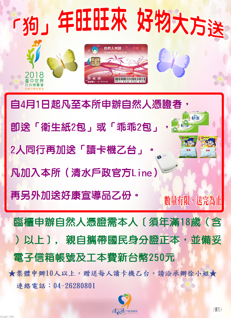 107年4月1日起凡至清水戶政申辦自然人憑證