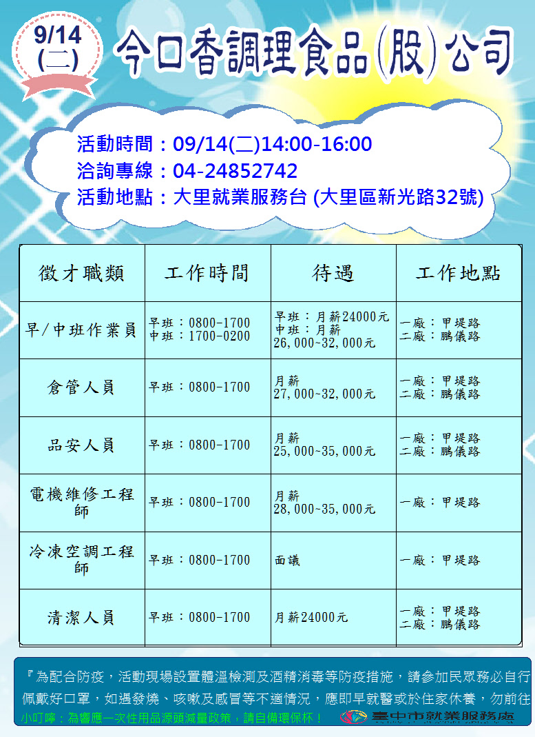 活動地點:大里就業服務台(臺中市大里區新光路32號)