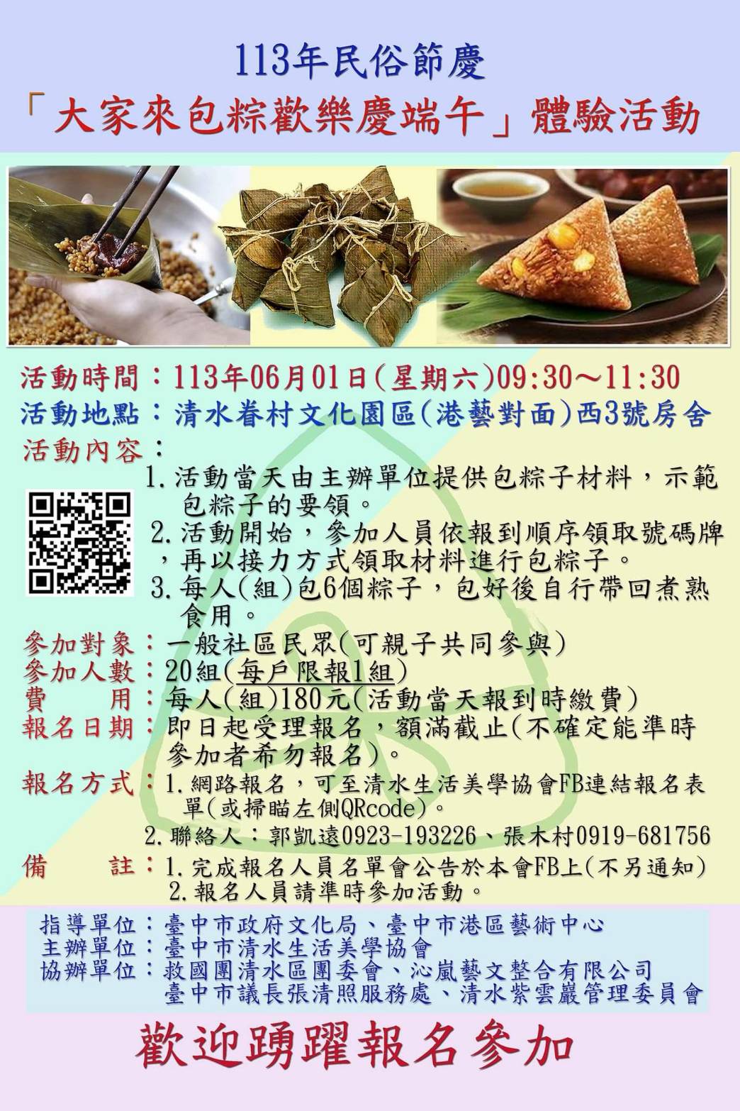113年民俗節慶 「大家來包粽歡樂慶端午」 體驗活動[已額滿]