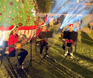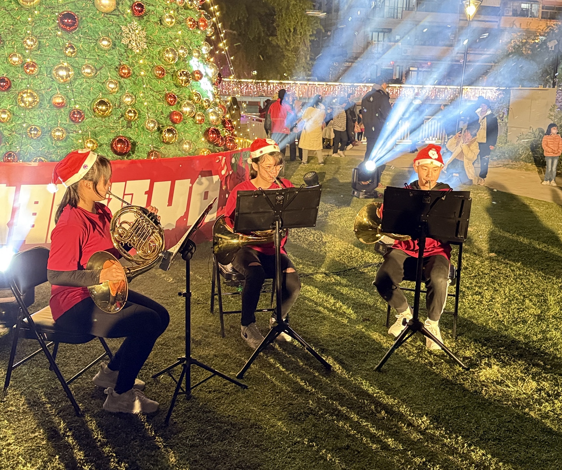 演出推派樂團中堅份子,吹奏技術純熟、聲音沉穩宏亮、號稱金鋼芭比的法國號五重奏,由中部知名演奏家李欣卉老師指導,成員包括國一的張書珣、黃紹涵,國二的莊宥盈、羅巧喬和國三的張朵萱,除了黃紹涵是進豐東管樂團才開始學法國號之外,其他四位都是從小三就練習至今。為現場觀眾帶來輕鬆、雅俗共賞的小品,包括普世歡騰、小白花、米老鼠進行曲、鐵達尼號電影主題曲和牙買加假期,與大家共享午後時光。