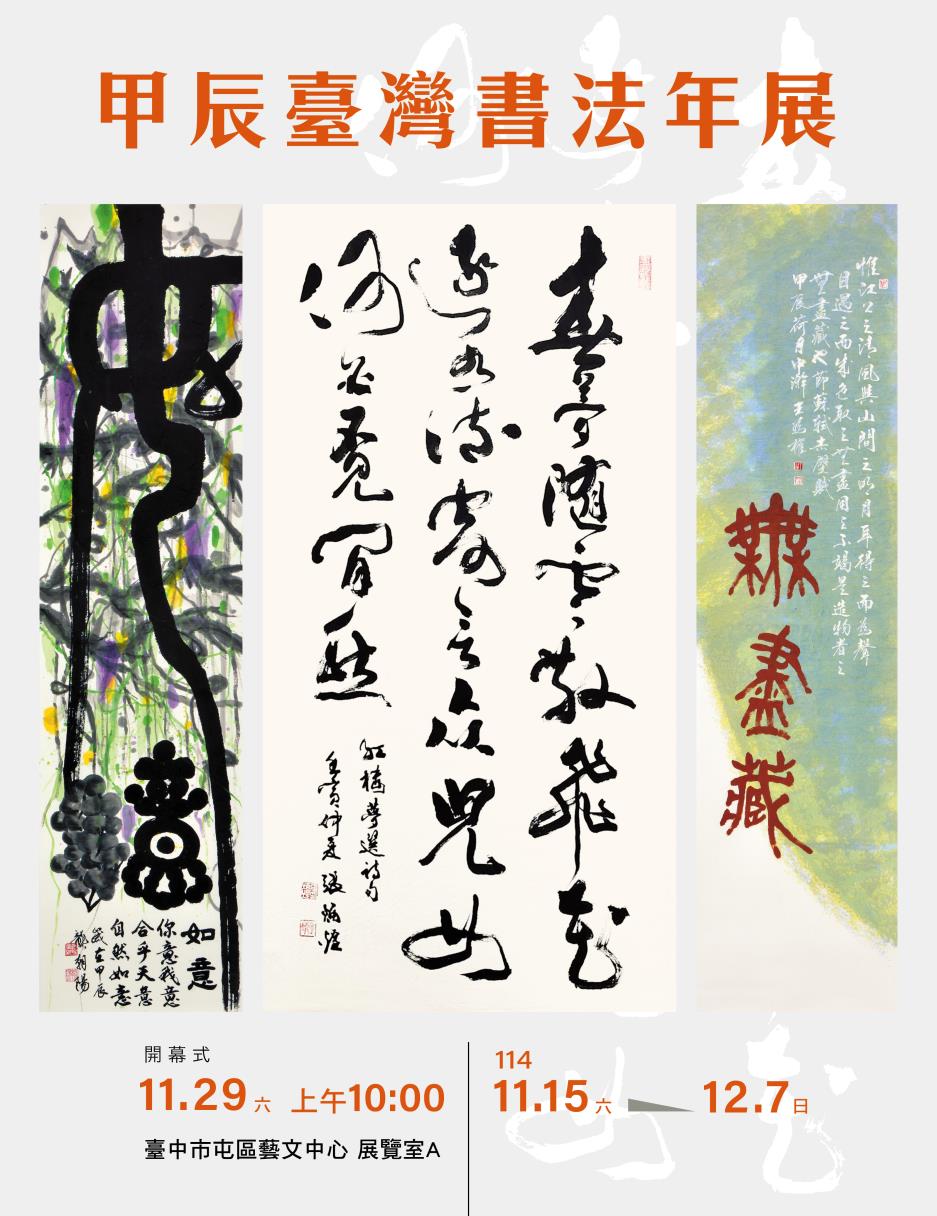 年展計有臺灣邀請名書家於甲辰年作品約50件,免審作品約50件,徵件作品約5百餘件中,嚴選200件入選,合計約250件;作品各體兼備,必能一飽眼福,享受心靈饗宴。