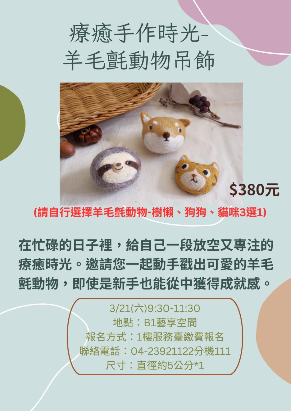 假日研習 ─ 療癒手作時光— 羊毛氈動物吊飾