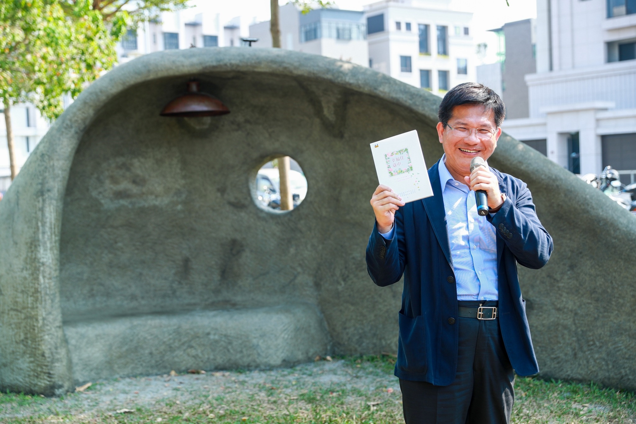 「台中花博x美好關係」蒲公英書席計畫,期待將美好的設計理念帶入生活,並發動群眾至書席分享書籍,鼓勵人們重拾書本,重建人與人的美好關係。今日有20處書席在台中市各公園綠地啟用;林市長也特地捐贈《幸福住台中》這本書,並在書頁題下:「懂生活的人,會愛上台中!」,期待民眾可以同時享受台中的花博香與書本香,將美好生活理念散播出去。