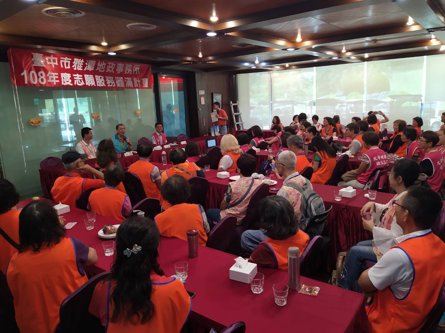 為凝聚地政事務所與志工間的情誼,雅潭地政事務所日前在台中高爾夫球場舉辦志願服務聯繫會報及志願服務圓滿計畫活動,同時邀請太平、東勢地政事務所的志工夥伴一起參與,共有80多名志工共襄盛舉,場面熱鬧,也活動相互交流,增進情感。