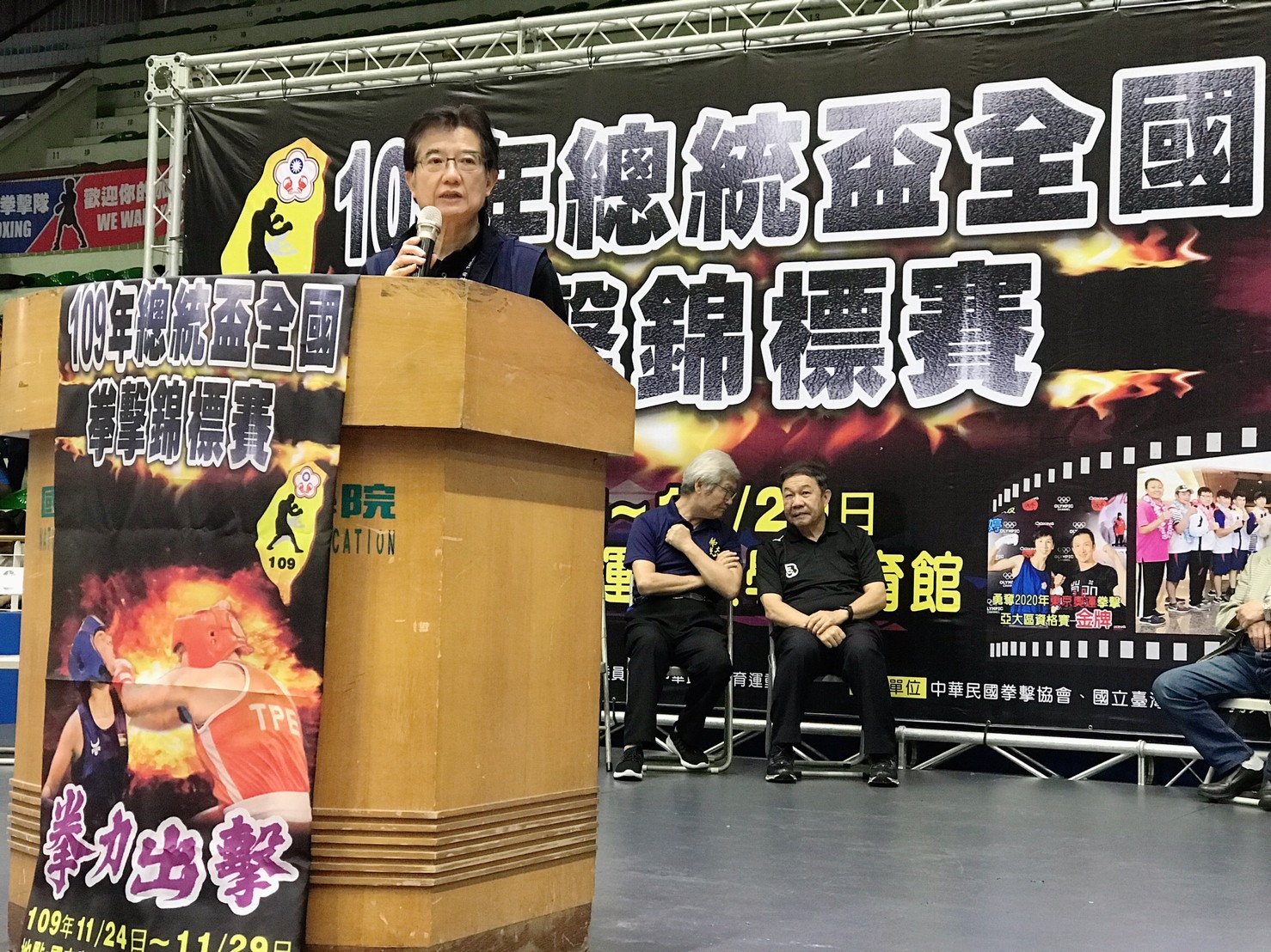 109年總統盃全國拳擊錦標賽今(24)起至29日於台灣體育運動大學登場,分為國男、國女、高男、高女、社男、社女等6組,共35個量級,吸引全國近700名選手參與,其中已取得奧運資格的4名選手,將與全國好手同場較勁,賽事精彩可期;運動局主任秘書賴東宏今日參與開幕典禮,期勉選手在高強度競技中,拿出最佳實力爭取佳績。