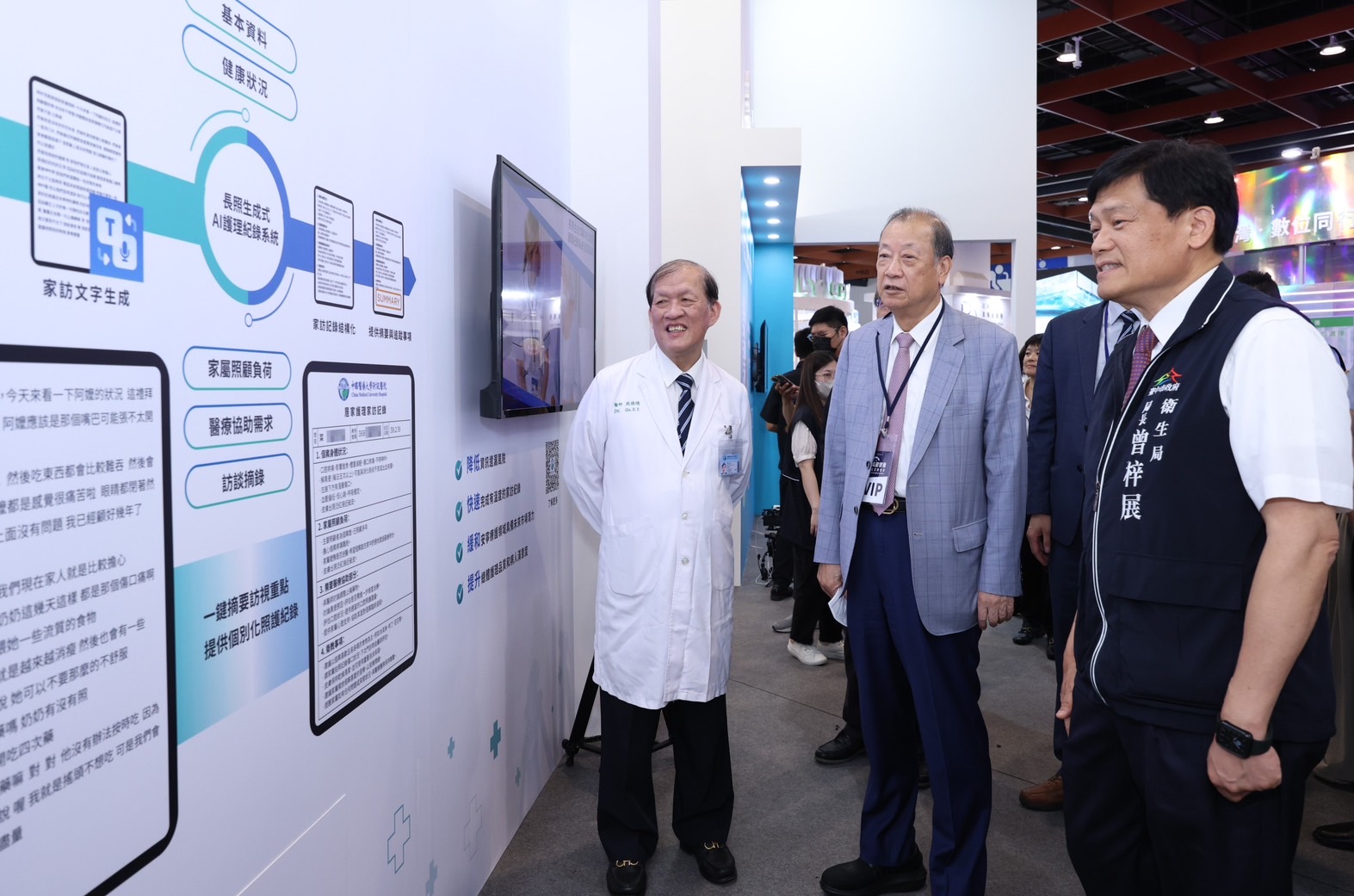 市府說明,中醫大暨醫療體系董事長蔡長海亦率領中醫大暨醫療體系專業團隊出席開幕式表達對此展重視。蔡董事長表示中醫大暨醫療體系不斷創新與追求卓越,秉持以病人為中心的理念,積極發展特色醫療、尖端醫療與研究、智慧醫療及高齡照護,致力與市府合作打造樂齡宜居健康台中。此次展示內容聚焦「尖端醫療」、「遠距照護」、「智慧護理」等三大主題,也特別展示為高齡者開發的全面照護服務,包括衰老檢測預防、AI遠距監控心肌梗塞、AI護理長照紀錄等,精彩展現其創新研究、數位醫療、智慧高齡全人照護等成果,展覽期間還有健康大檢測等讓民眾免費體驗,歡迎大家一同來台中館(攤位號B409)參觀。