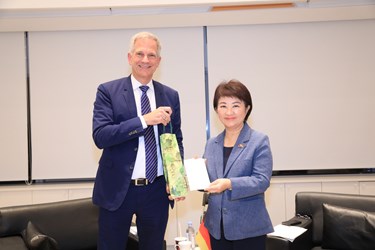 盧市長表示,德國是我國在歐洲最大及全球第8大貿易夥伴、第10大出口市場與第6大進口來源,感謝近年很多德國企業加碼投資台中,雙方有很緊密的貿易關係與互動。台中是台灣中部經貿樞紐,很多德國企業在台中有很好發展,面對近年變動劇烈的國際經貿情勢,期望雙方能共同開創更多合作機會。
