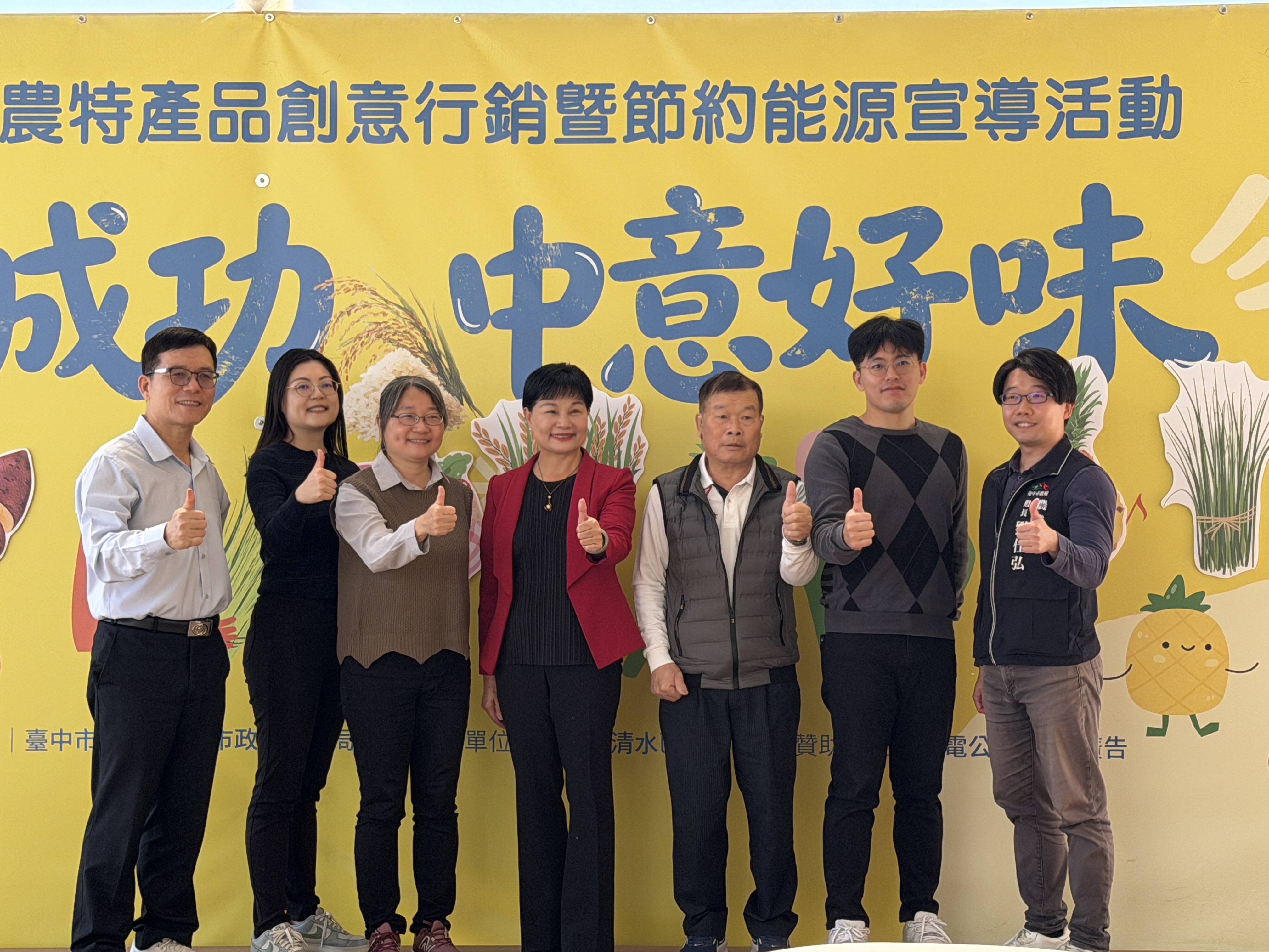 今日活動,農業部農糧署中區分署台台中辦事處主任陳瑛、台灣電力公司台中發電廠專員洪嘉連、台中市政府農業局股長劉仕弘、西區區公所區長王瑞嘉、清水區公所主任秘書王培軒、清水區農會理事長鄭江銅、常務監事王維期、總幹事顏秋月、各理監事等到場共襄盛舉。
