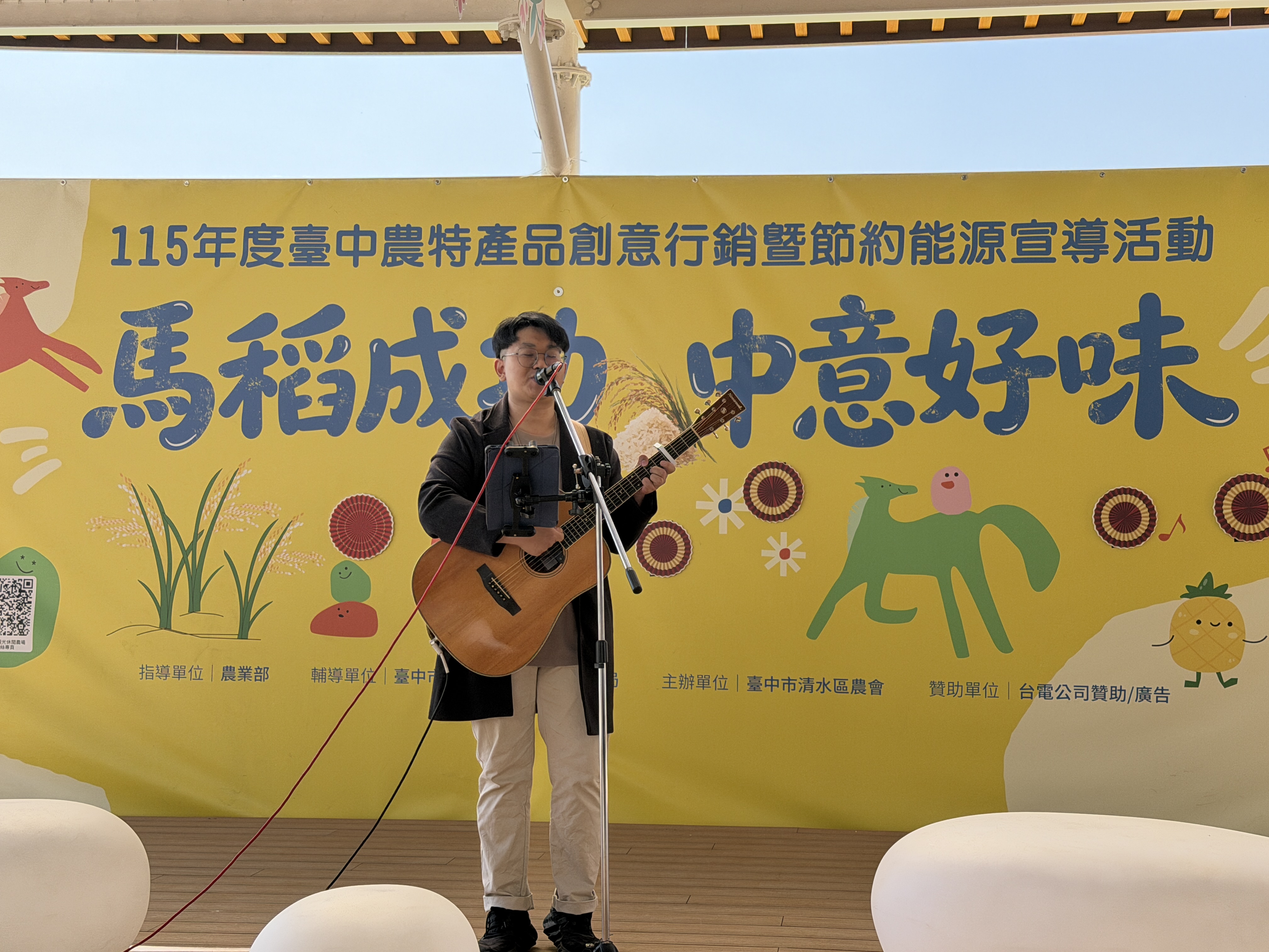 農業局說明,活動期間除清水農創驛站展售台中農特產加工品、戶外園區辦理農民市集、音樂文創市集,現場寫春聯活動,也同步辦理節約能源宣導,透過互動解說與宣導資料發放,倡導節能減碳、珍惜資源的生活理念,讓農業喜氣洋溢。
