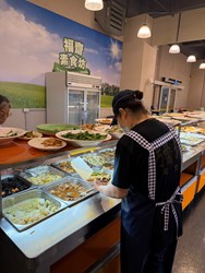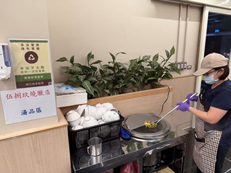 秘書處說明,員工餐廳各進駐廠商發揮創意,以不同方式落實惜食精神,其中伍捌玖燒臘店透過食材全利用,將骨架熬製成湯品後免費供應給用餐同仁;阿鎮現榨果汁堅持果汁現點現打、四海遊龍採取每日現包鍋貼,以精準控管份量;日風小棧小吃部依來客量不定時提供加菜、5元折扣或將餐點分享給鄰近櫃位廠商;福齋精緻素食則將剩餘菜餚免費分送給自家員工,共同落實廚餘減量。