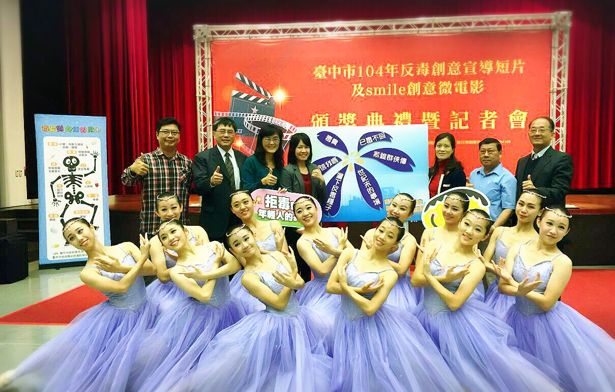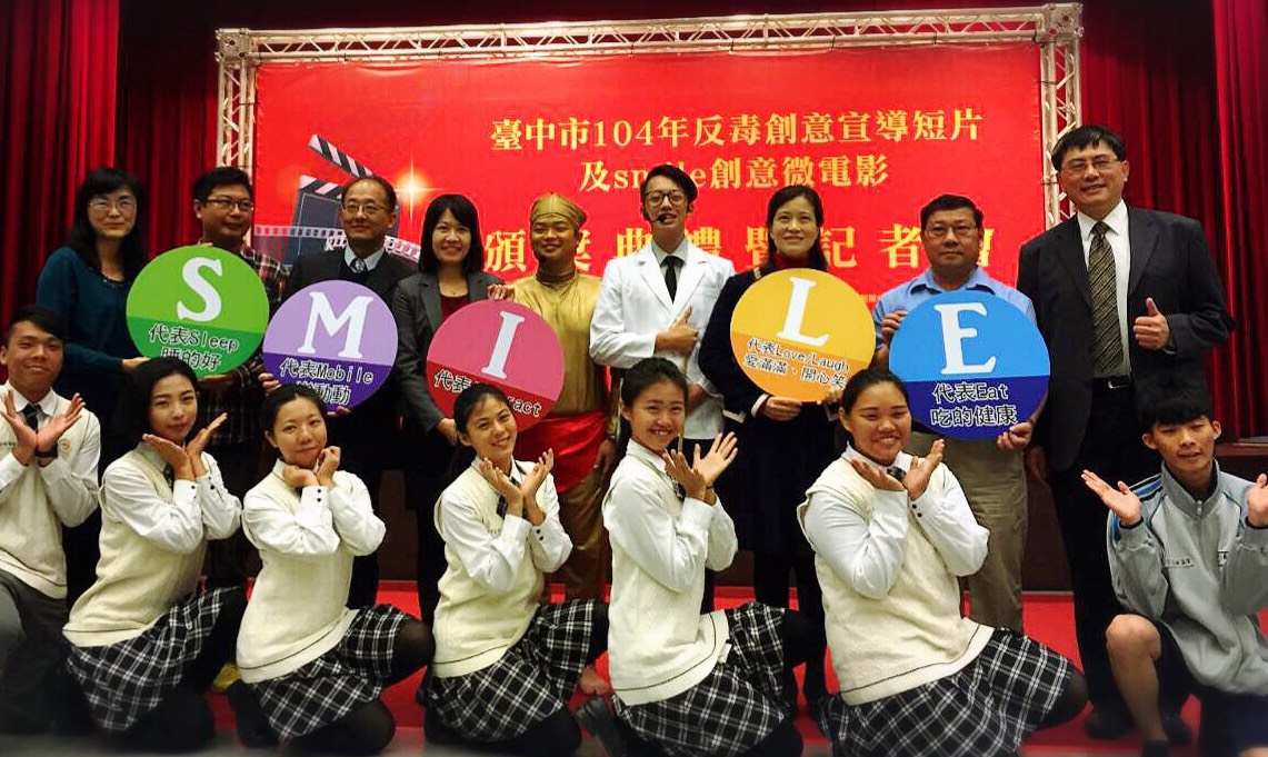 為提升民眾對心理健康促進的重視,了解接觸毒品的嚴重性進而遠離毒品,衛生局今年首次舉辦「台中市104年反毒創意宣導短片及smile創意微電影徵選活動」,自8月21日起至10月30日徵選創意影片,更邀請到知名電影《少年Pi的奇幻漂流》台灣藝術操偶師、業界影音展覽策展人及廣播人擔任評審,希望透過年輕族群的視野,拍攝兼具創意、活潑與詼諧的宣導短片。